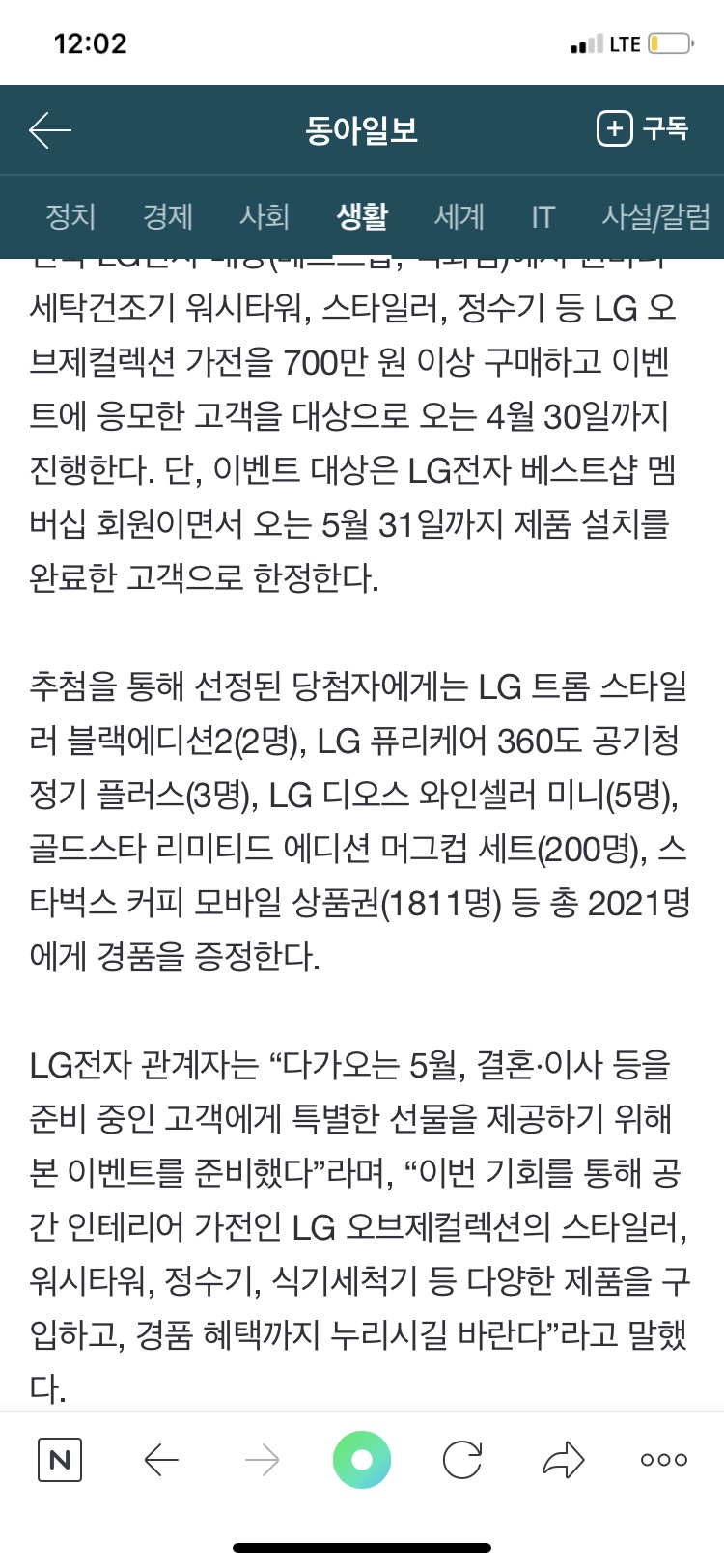 엘지전자 멤버십 앱을 설치했기에 이벤트에 신청을 했고 까맣게 있고있었다......
